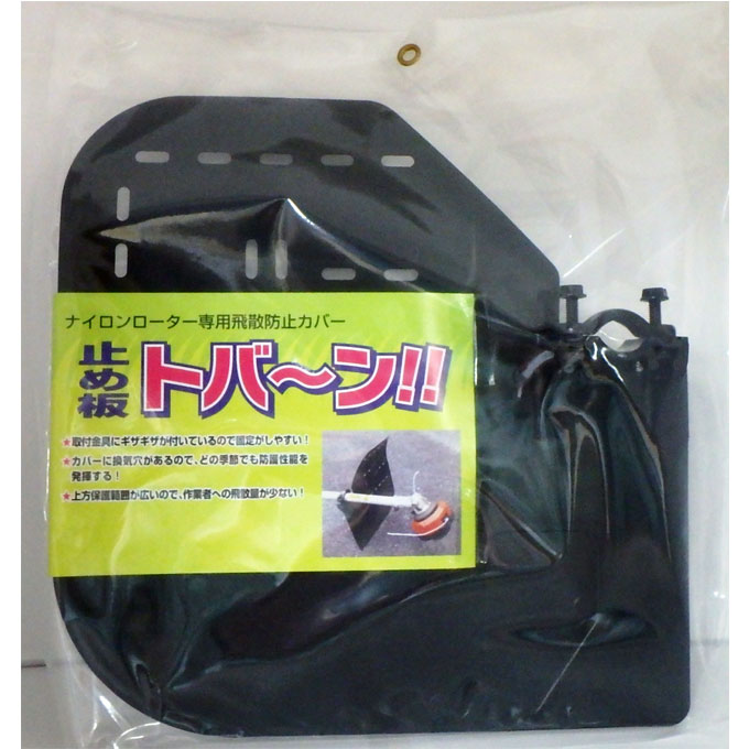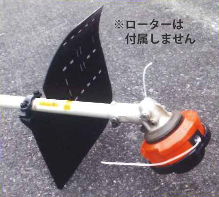 草刈機のシャフトに取り付けて、ローターから作業者方向へ飛ぶ飛散物をブロックします。